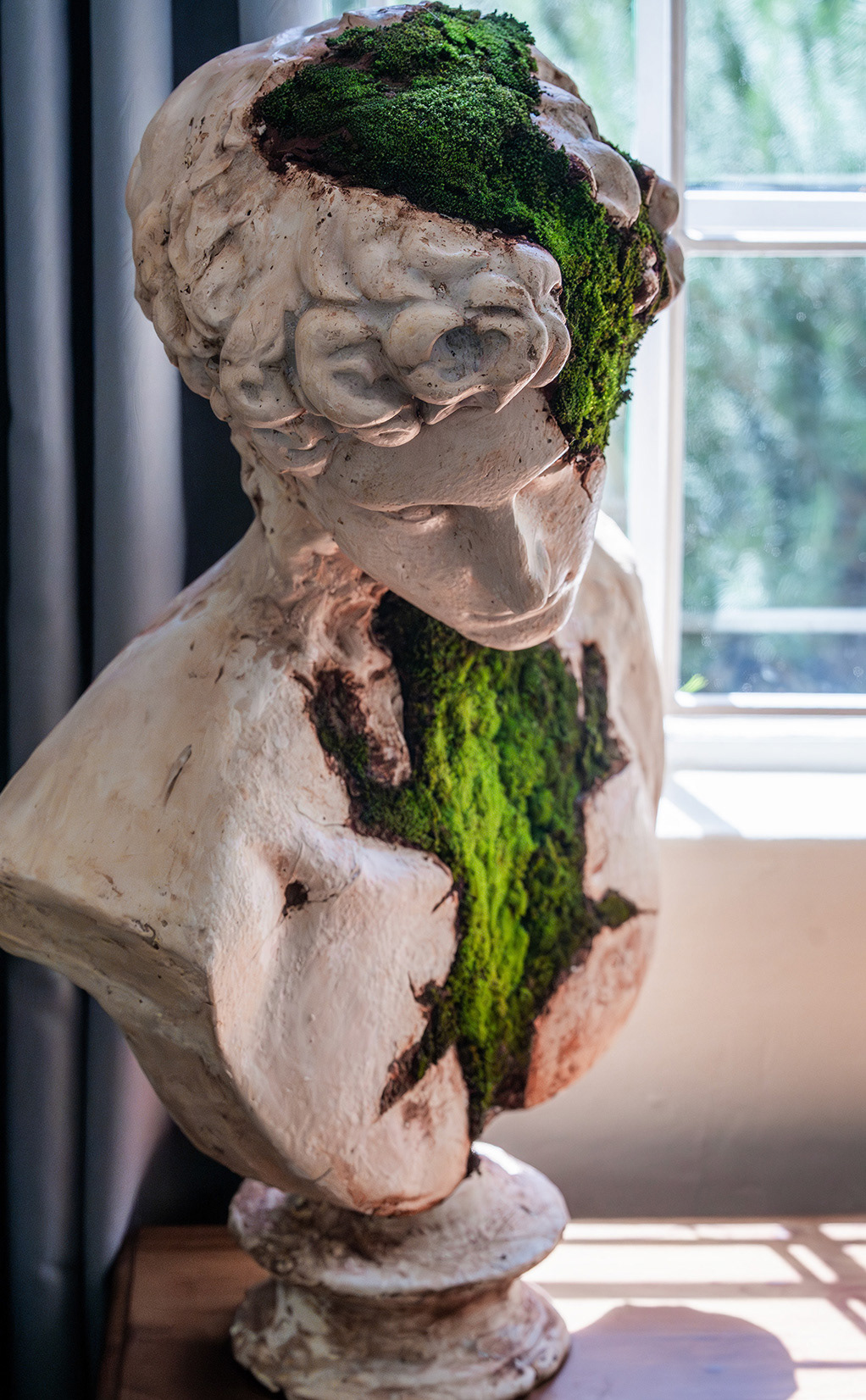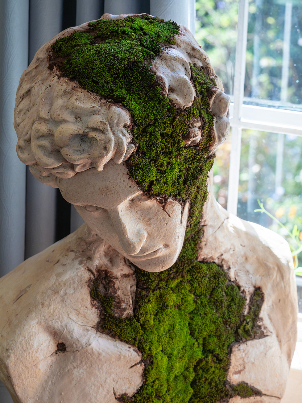 A celebration of the idyllic human form merged with nature’s eternal endurance. A hand-sculpted 1/1 'Future Relic', embodying the peak of human grace. With real, living moss. This is not a study of decay, but a luminous testament to our eternal bond with nature. It is an artifact of the future, a handcrafted bridge between human and natural beauty. Unique 1/1, entirely custom-sculpted.
